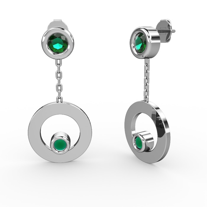 Yeşil kuvars ve kök zümrüt 925 ayar gümüş küpe