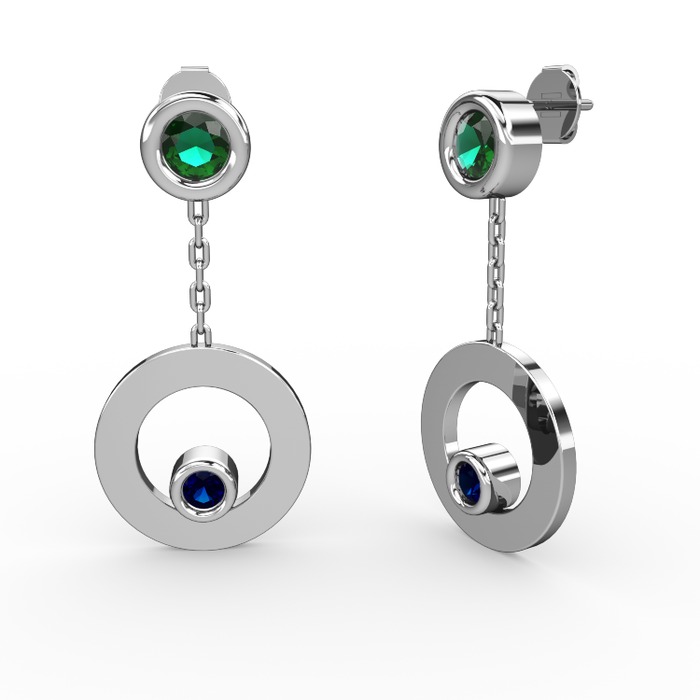 Yeşil kuvars ve lab safir 18 ayar beyaz altın küpe