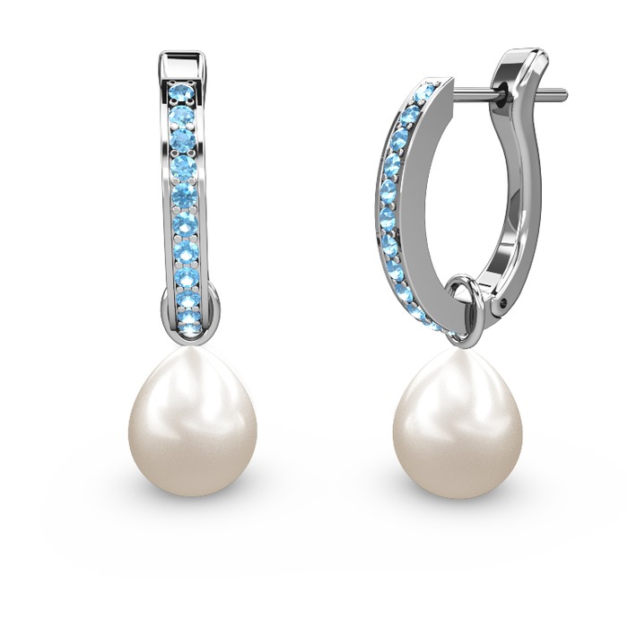 Akuamarin ve inci 18 ayar beyaz altın küpe