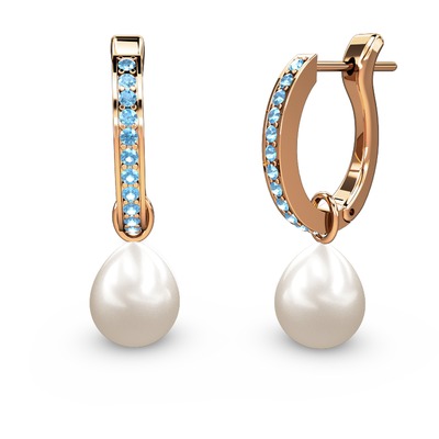Akuamarin ve inci 925 ayar rose altın kaplama gümüş küpe