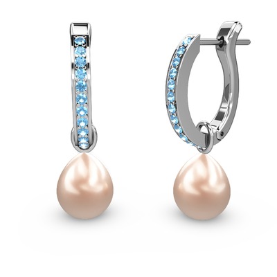 Akuamarin ve pembe inci 14 ayar beyaz altın küpe