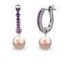 Ametist ve pembe inci 14 ayar beyaz altın küpe
