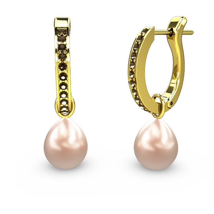Dumanlı kuvars ve pembe inci 14 ayar altın küpe