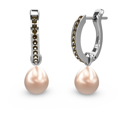 Dumanlı kuvars ve pembe inci 8 ayar beyaz altın küpe