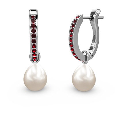 Garnet ve inci 8 ayar beyaz altın küpe