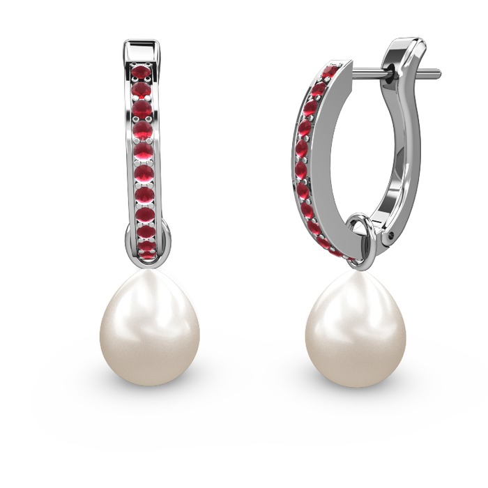 Kök yakut ve inci 8 ayar beyaz altın küpe