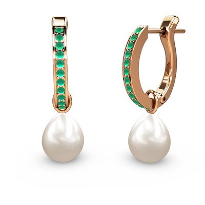 Kök zümrüt ve inci 925 ayar rose altın kaplama gümüş küpe
