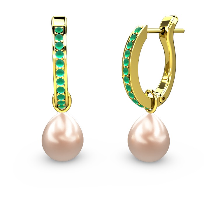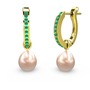 Kök zümrüt ve pembe inci 8 ayar altın küpe