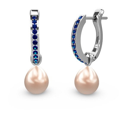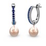 Lab safir ve pembe inci 18 ayar beyaz altın küpe