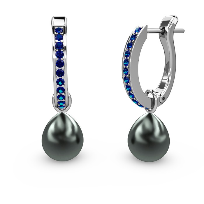 Lab safir ve siyah inci 18 ayar beyaz altın küpe