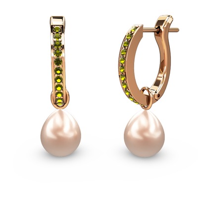 Peridot ve pembe inci 18 ayar rose altın küpe