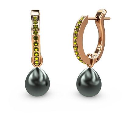 Peridot ve siyah inci 18 ayar rose altın küpe