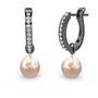 Pırlanta ve pembe inci 925 ayar siyah rodyum kaplama gümüş küpe (0.42 karat)