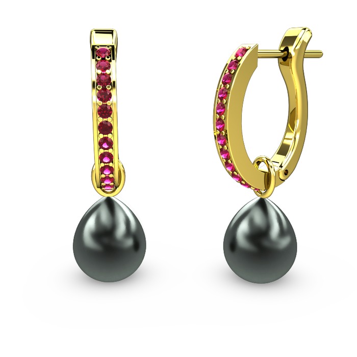 Rodolit garnet ve siyah inci 18 ayar altın küpe