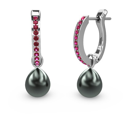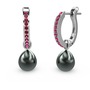 Rodolit garnet ve siyah inci 8 ayar beyaz altın küpe