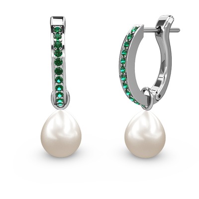 Yeşil kuvars ve inci 14 ayar beyaz altın küpe