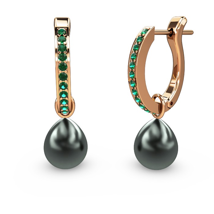 Yeşil kuvars ve siyah inci 14 ayar rose altın küpe