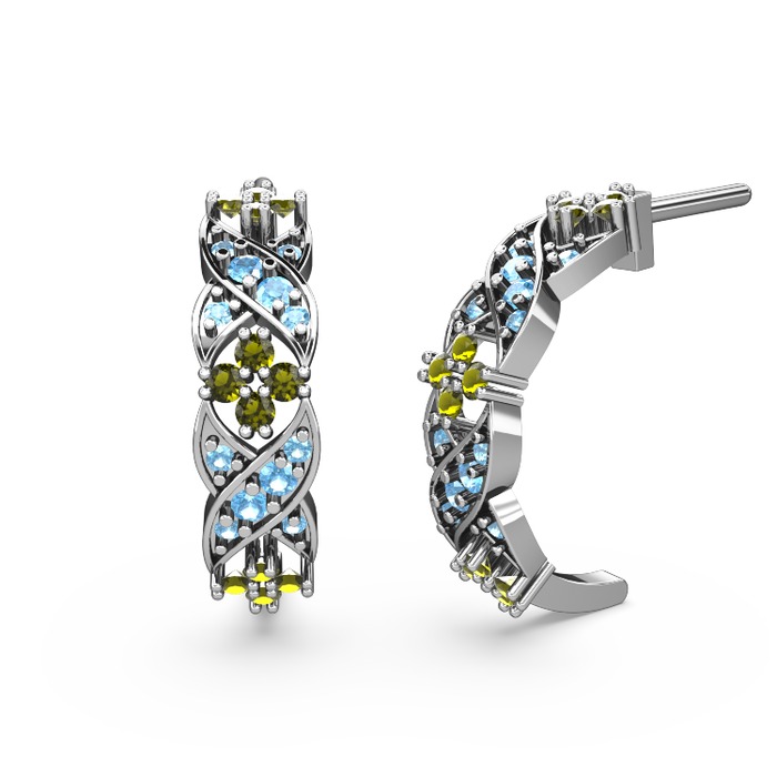 Akuamarin ve peridot 18 ayar beyaz altın küpe