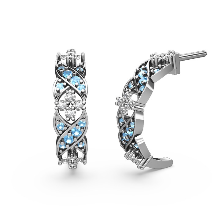 Akuamarin ve pırlanta 18 ayar beyaz altın küpe (0.1408 karat)