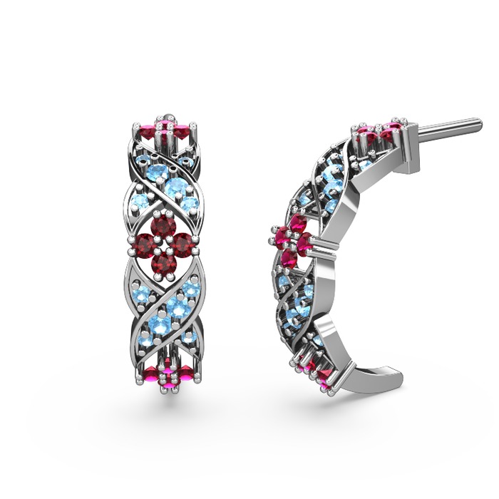 Akuamarin ve rodolit garnet 925 ayar gümüş küpe