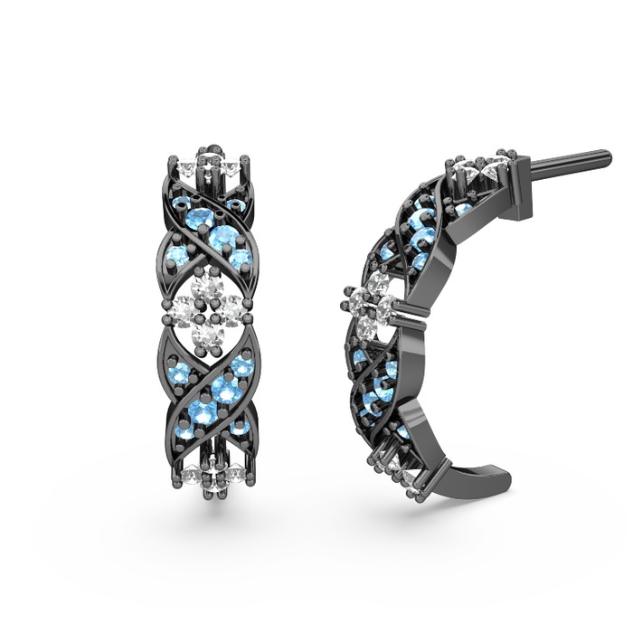Akuamarin ve swarovski 925 ayar siyah rodyum kaplama gümüş küpe