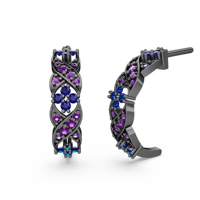 Ametist ve lab safir 925 ayar siyah rodyum kaplama gümüş küpe