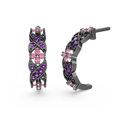 Ametist ve pembe kuvars 925 ayar siyah rodyum kaplama gümüş küpe