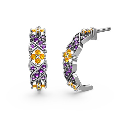 Ametist ve sitrin 925 ayar gümüş küpe