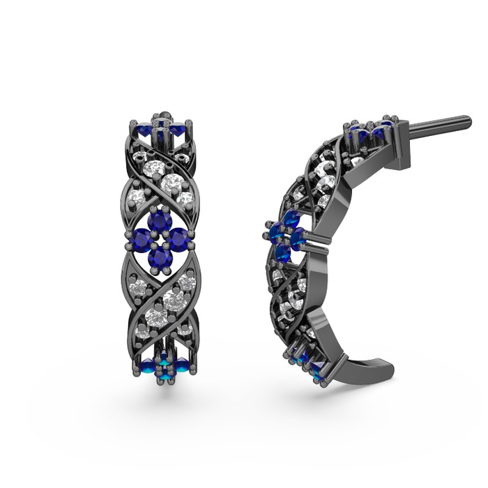 Beyaz zirkon ve lab safir 925 ayar siyah rodyum kaplama gümüş küpe