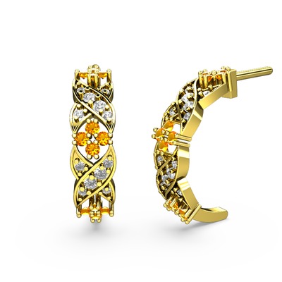 Beyaz zirkon ve sitrin 18 ayar altın küpe