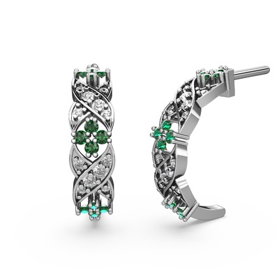 Beyaz zirkon ve yeşil kuvars 8 ayar beyaz altın küpe