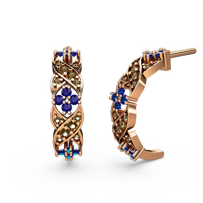 Dumanlı kuvars ve lab safir 14 ayar rose altın küpe