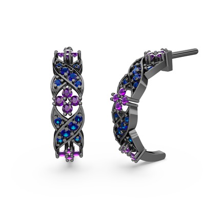 Lab safir ve ametist 925 ayar siyah rodyum kaplama gümüş küpe