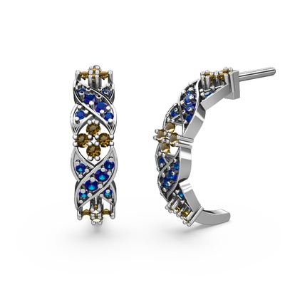 Lab safir ve dumanlı kuvars 14 ayar beyaz altın küpe