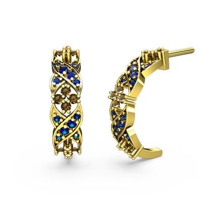 Lab safir ve dumanlı kuvars 8 ayar altın küpe