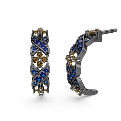 Lab safir ve dumanlı kuvars 925 ayar siyah rodyum kaplama gümüş küpe