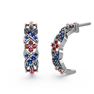 Lab safir ve garnet 18 ayar beyaz altın küpe