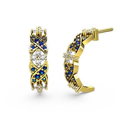 Lab safir ve pırlanta 925 ayar altın kaplama gümüş küpe (0.1408 karat)