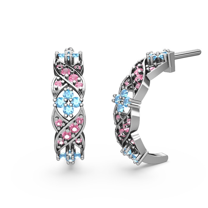 Pembe kuvars ve akuamarin 8 ayar beyaz altın küpe