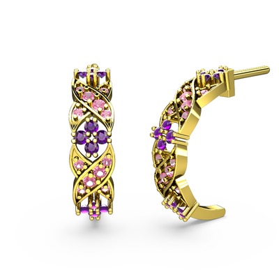 Pembe kuvars ve ametist 925 ayar altın kaplama gümüş küpe