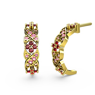 Pembe kuvars ve garnet 18 ayar altın küpe