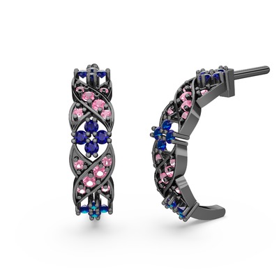 Pembe kuvars ve lab safir 925 ayar siyah rodyum kaplama gümüş küpe