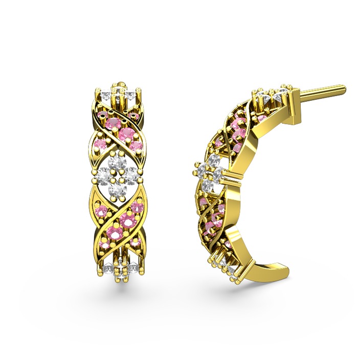 Pembe kuvars ve swarovski 14 ayar altın küpe