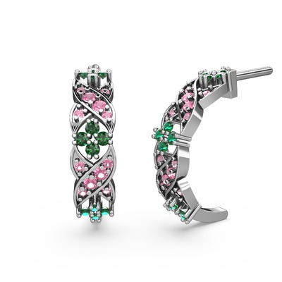 Pembe kuvars ve yeşil kuvars 925 ayar gümüş küpe