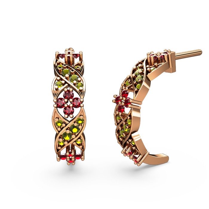 Peridot ve garnet 925 ayar rose altın kaplama gümüş küpe
