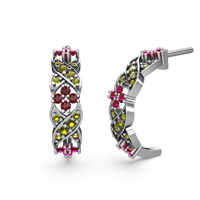 Peridot ve rodolit garnet 8 ayar beyaz altın küpe