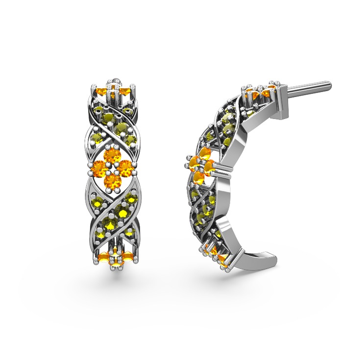 Peridot ve sitrin 14 ayar beyaz altın küpe
