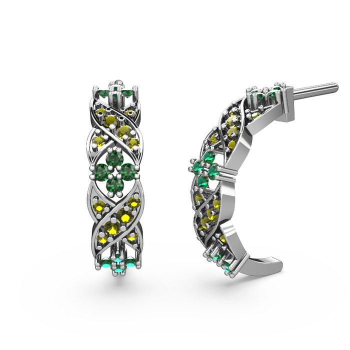 Peridot ve yeşil kuvars 8 ayar beyaz altın küpe