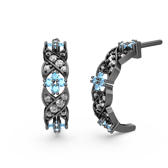 Pırlanta ve akuamarin 925 ayar siyah rodyum kaplama gümüş küpe (0.54 karat)