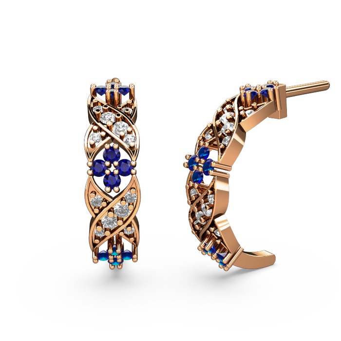 Pırlanta ve lab safir 925 ayar rose altın kaplama gümüş küpe (0.54 karat)